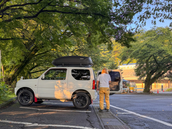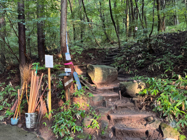 水沢観音大駐車場にジムニーを停め、身支度を整える。到着は6時、歩き始めたのは6時15分ごろ。