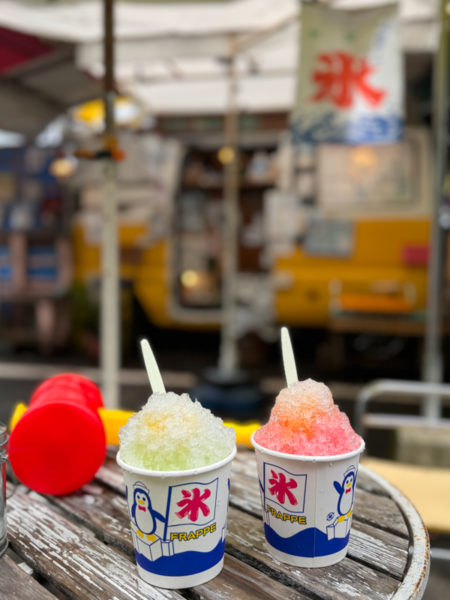 山歩きの朝練を終えたら、黄色いキッチンカー「ブーブーカフェ」でかき氷を頬張り急速クールダウン。
