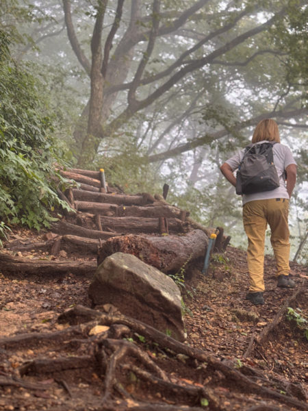 天気予報では「早朝から晴れ」だったはずが、どうやら直前までゲリラ的な土砂降りがあったらしく、道路はびしょ濡れだった。でも山は晴天。