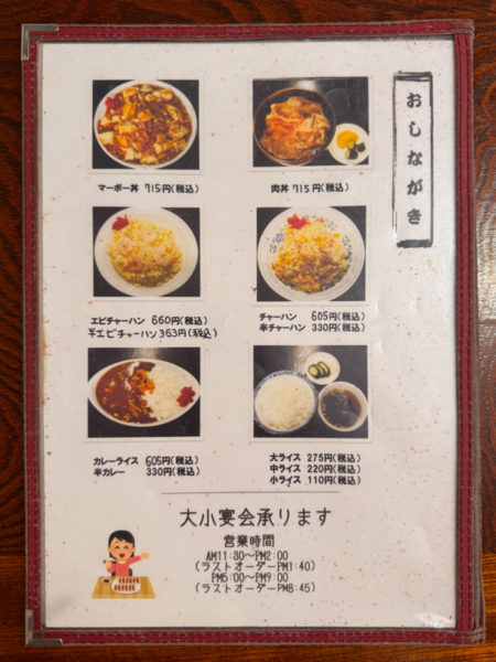チャーシュー麺に半エビチャーハン、ワンタン麺を頼んで、二人で2000円出したらお釣りが300円返ってきた。