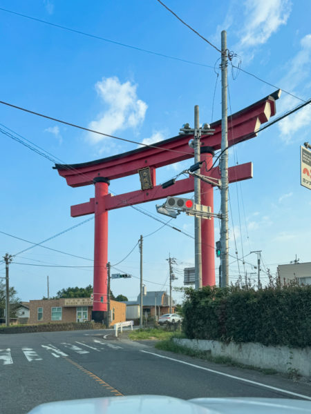 赤城山大鳥居の前で信号待ち。
