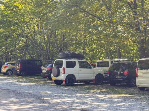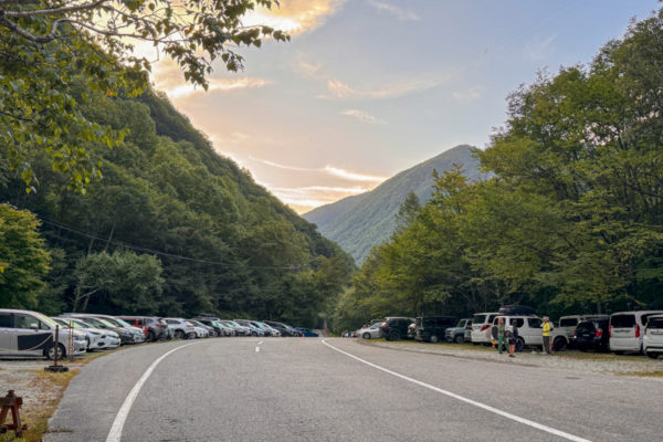 でもそこは、北アのこのエリアに慣れている仲間の指示に従い、ぐいぐい前に詰めてもらって縦列駐車をさせてもらう。小さな軽自動車二台だからできた芸当だ👌