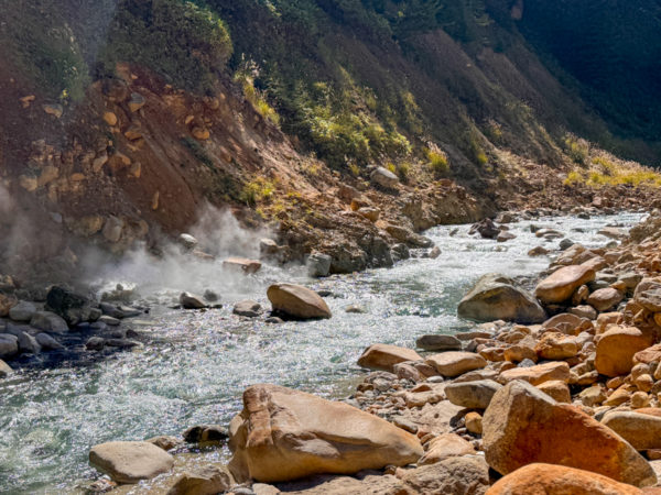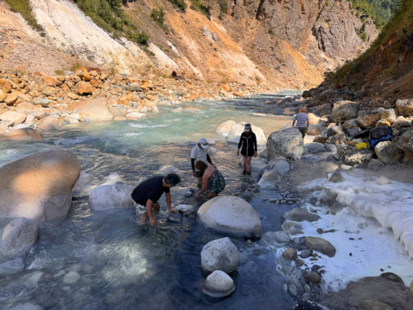 ひとしきり楽しんだら再び渡渉し、国の天然記念物「噴湯丘」へ移動する。