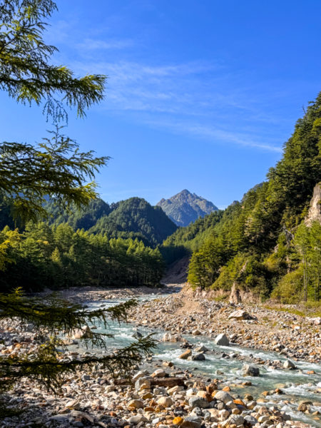 湯俣川と槍ヶ岳。