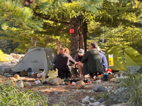 憧れの伊藤新道の“さわり”だけでも楽しめて、満足してテン場へ急ぎ戻り、喉を潤し腹を満たすことになった。