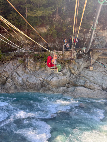 準備が整ったら、ジップラインで再び対岸へ。