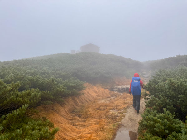 結局、小屋が見えるほど近づくまでは、濃霧で何も見えなかった。
