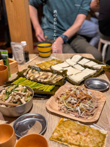 中でも、富山の山仲間がこしらえて持ってきてくれる昆布締めの数々が絶品で、箸がまったく止まらない。
