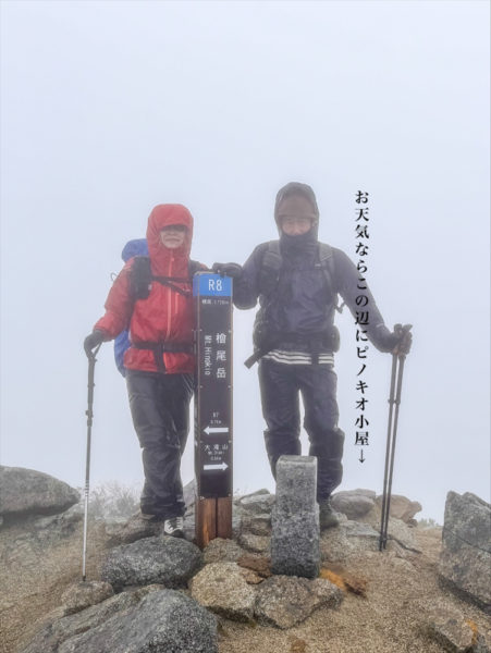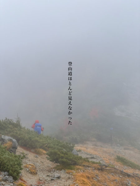 だから、たとえ目の前が濃霧で真っ白でも、暴風にあおられても、びしょ濡れになろうとも、足取りは「檜尾岳」へ一直線。アップダウンを繰り返す稜線をひたすら進んでゆく。