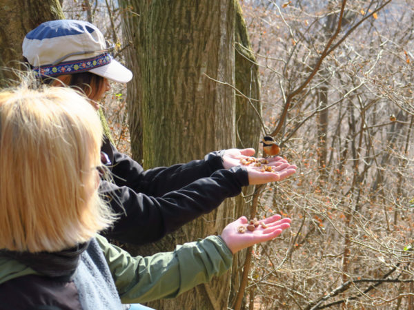 水沢山(お休み石)といえば、ヤマガラやシジュウカラなどの野鳥への餌やりが有名だ。