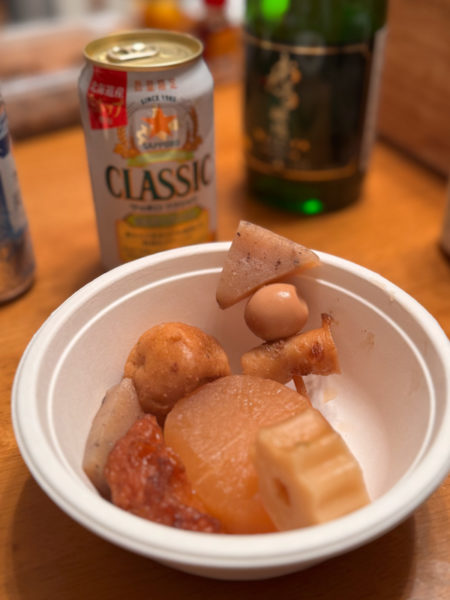 本格的な「おでん器」を持参するという、相変わらずのこだわりっぷり。立派なおでん屋となっていた笑