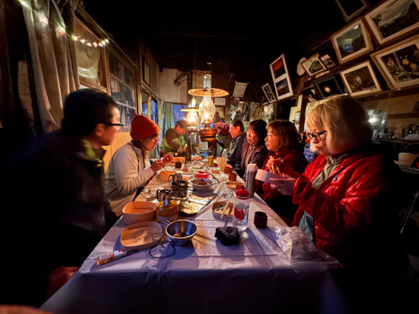 まずは寝床を整え、着替えて各々準備をしたら、いきなり宴の開始となる。