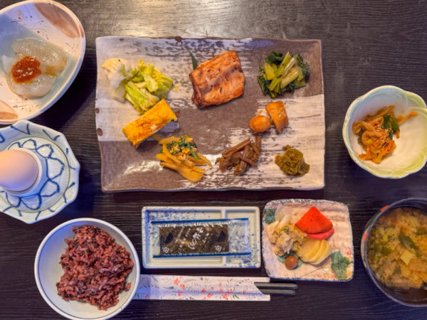 翌朝、温泉は6時から入れるので、朝めし前に二日酔いの頭をしゃっきりさせるのにはちょうど良い。