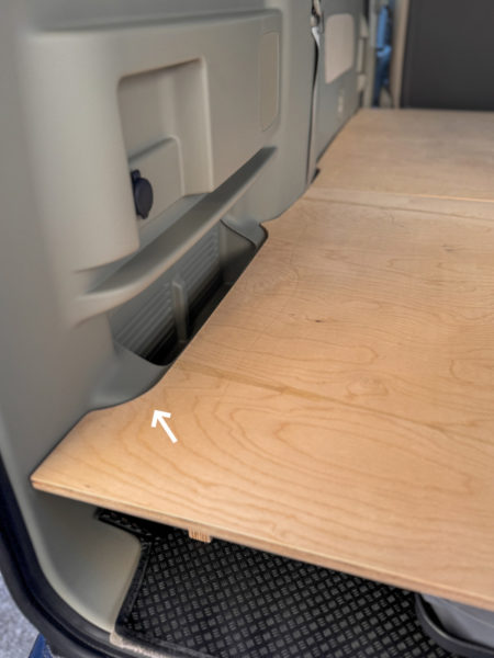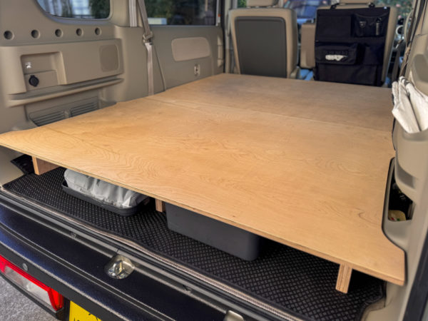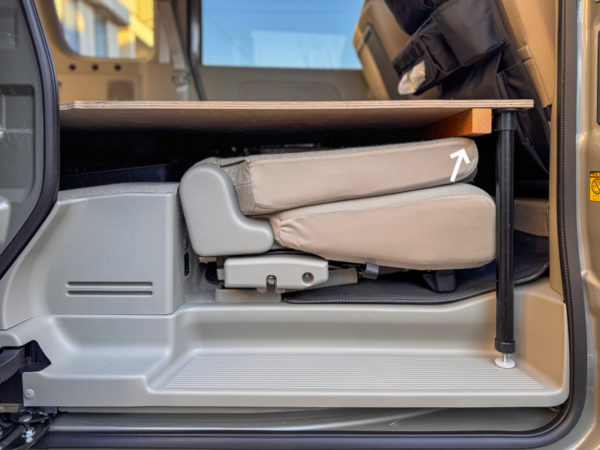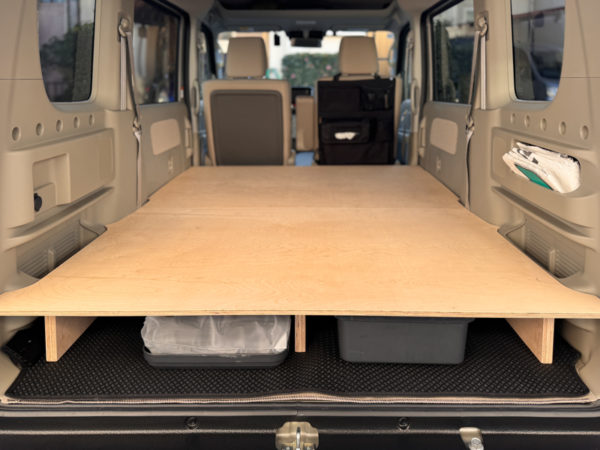 何より、エブリイワゴンの車内アウトラインに沿った合板のカットが、美しい。