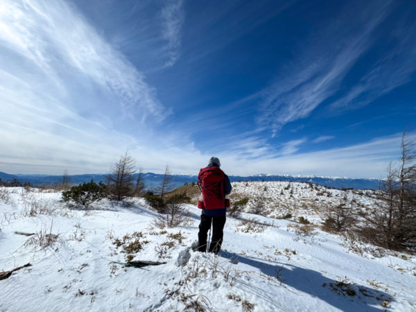 それでも、扉温泉から鉢伏山までのコースには危険なところなどはほとんど無いから、ゆっくりと一歩一歩、気持ちを込めて、雪を踏みしめながら歩いていった。