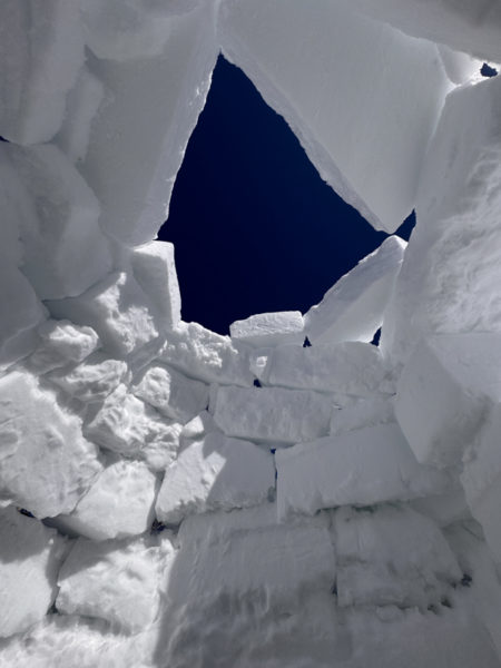 完成したイグルー内部から見上げる光景は、何度見ても美しい。