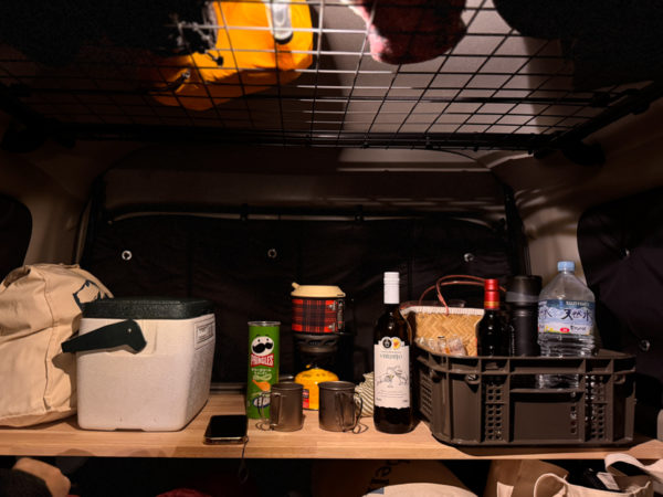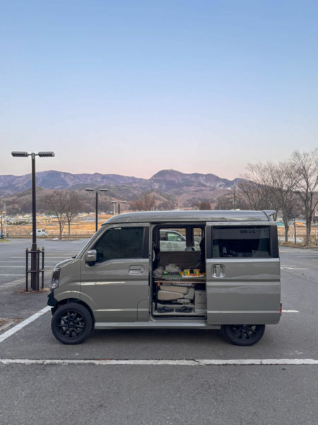 『泊まれる車エブリイワゴン』へ乗り換えて以来、温泉セット、就寝セット、防寒セット、晩酌セットを常備していたのがここで真価を発揮。