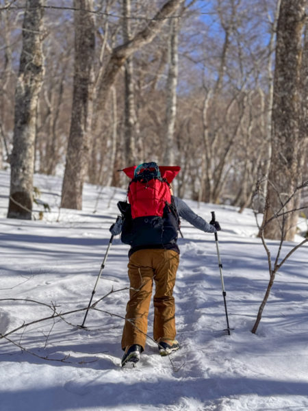 背中に背負ったスノーシューとアイゼンは、この日ついに出番なく、終始ただの重りとなった。