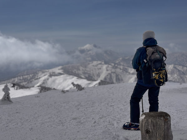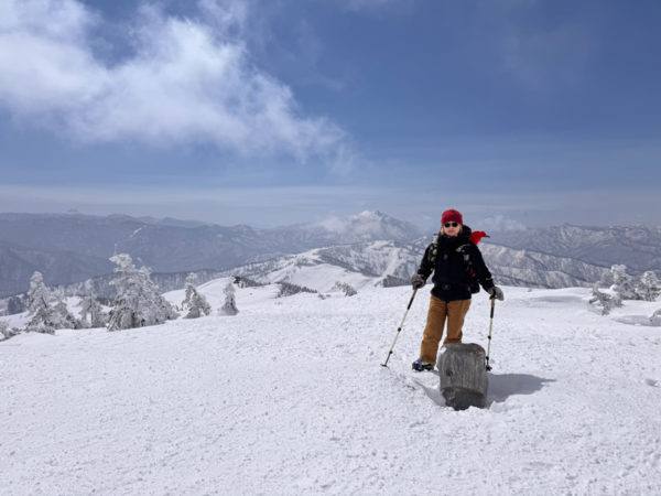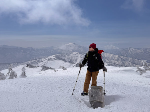会津駒ヶ岳の山頂で、銀世界のパノラマの景色に魅了された。