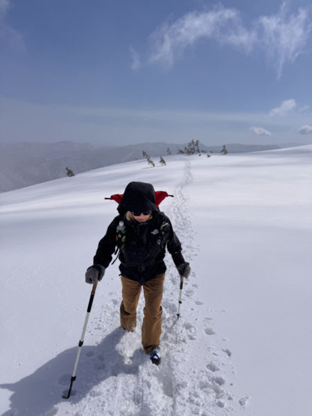 ピッケルがあった方がよかった場面もあり、スノーシューが欲しくなる場所もあって、その選択はなかなか難しい山行ではあった。