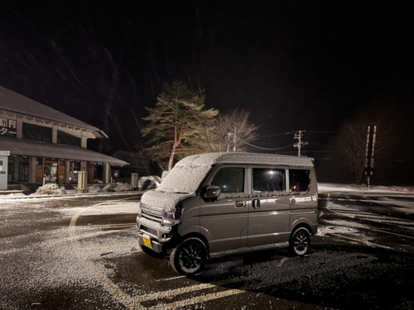 山歩きのあとに温泉に入れば、もうくたくた。運転して帰る気など、すっかり失せてしまう。そんなときも、動く宿〝エブリイワゴン〟の威力が発揮されるのだから素晴らしい。
