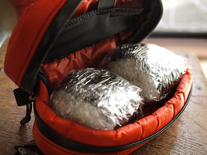 ちょうどピッタリおにぎり2個が入る。蓋の裏に保冷剤を入れておけば、この暑さでもお昼位までは問題なし。