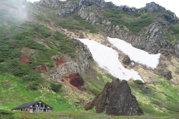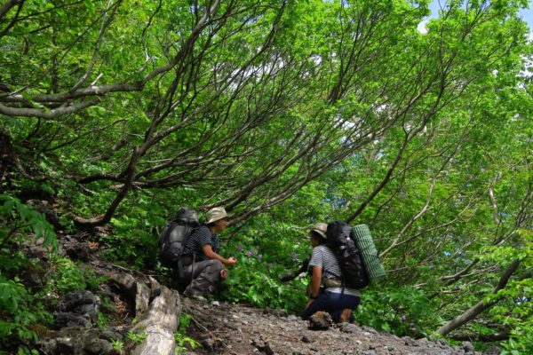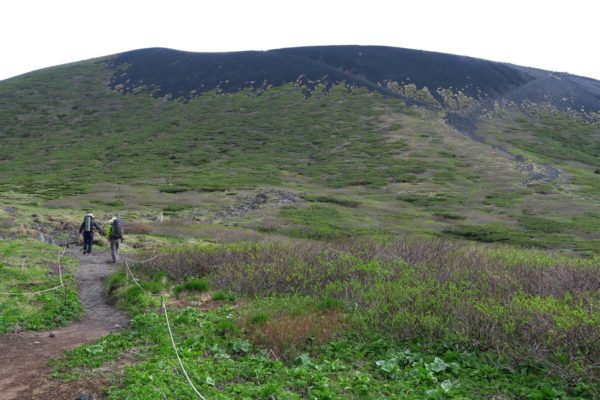 そして水場のある八合目避難小屋、さらにそしてこの日ボクらがお世話になる9合目の不動平避難小屋まで歩を進めたら、重たいザックを小屋で荷解いて、風呂敷を広げて、空身となって岩手山の山頂まで軽快に歩いていきます。