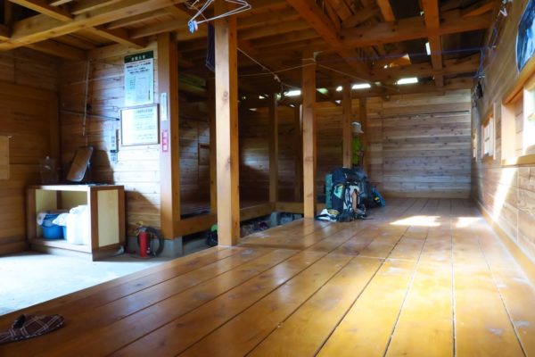 そしてたわいのない話をひとしきり楽しんで肩肘ついて横になっていると、睡魔がやってきます。ここは逆らわず21時に就寝。この日の小屋にはボクらの3人だけでした。